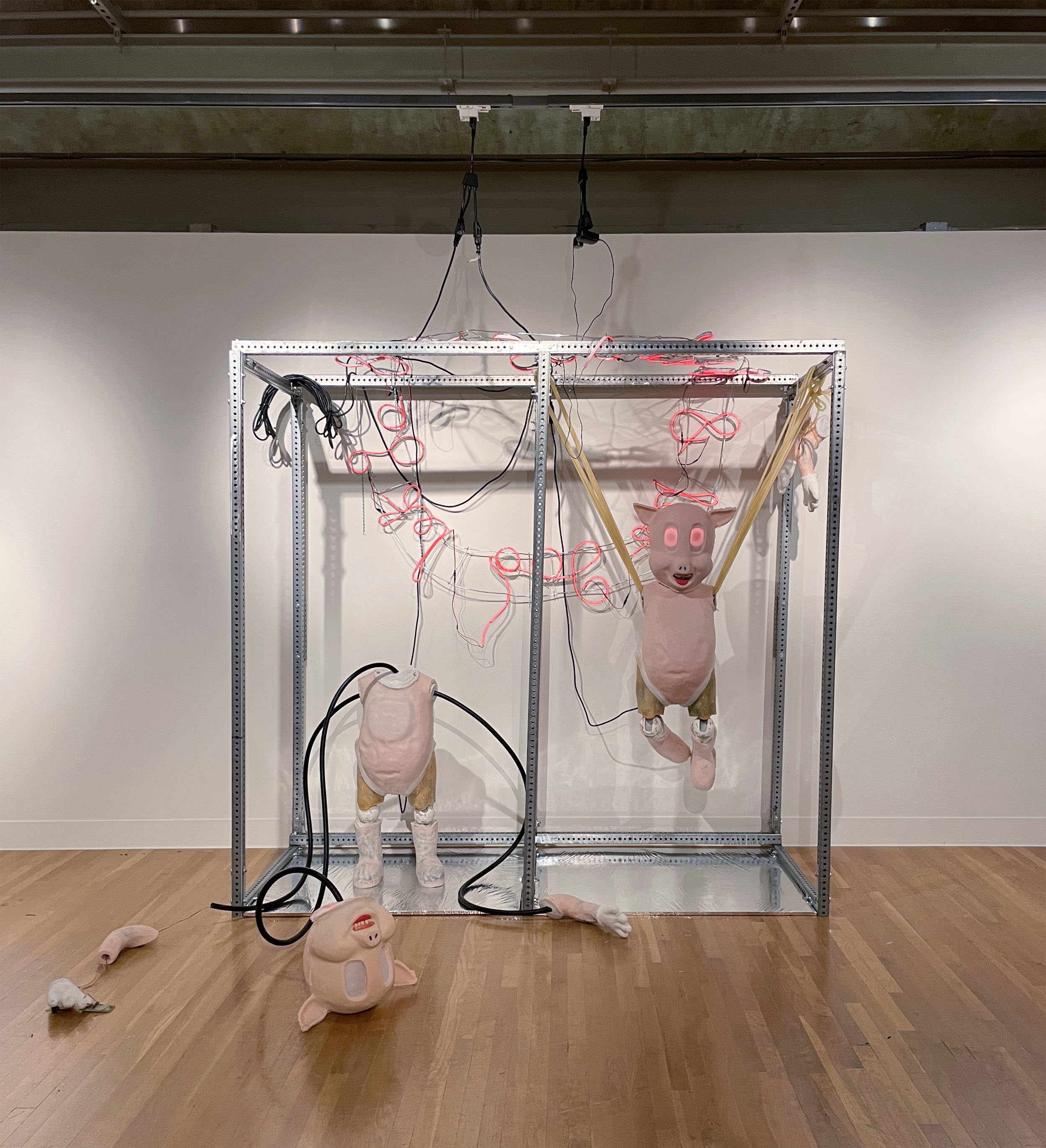 Silicone, microcontrollers, linear actuator, safety blankets, conduit, plastidip, animated led lights, mouse trap, epoxy, urethane rubber, and latex tubes.